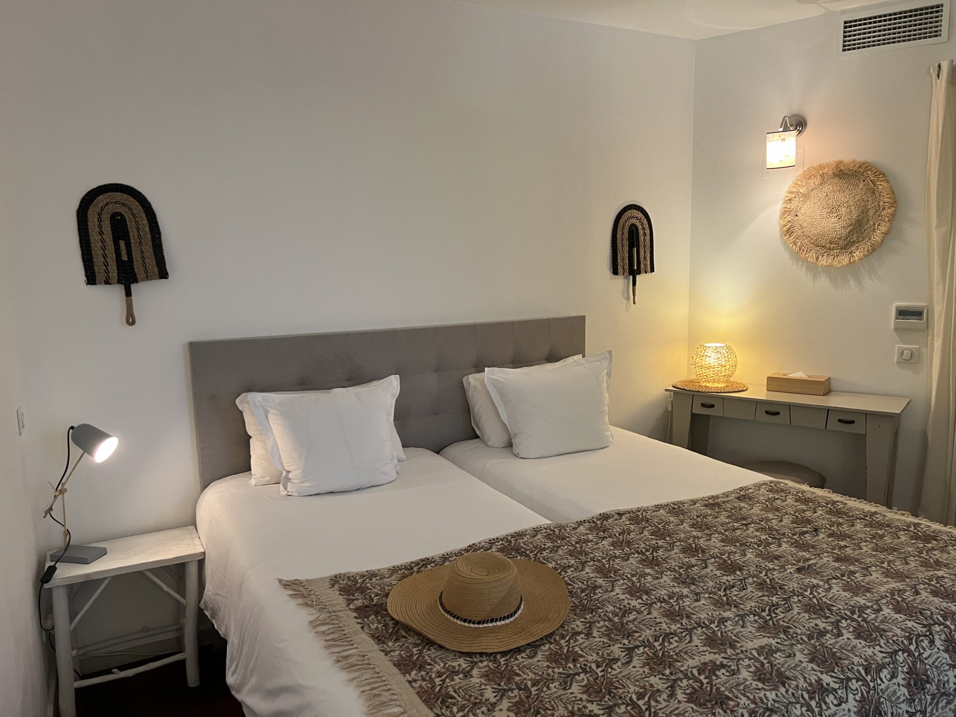 Laissez-vous séduire par l’ambiance chaleureuse et intime de nos chambres Supérieures Esprit Cabane. Chaque chambre est conçue comme une véritable cabane, offrant un espace de tranquillité avec une petite terrasse privée donnant sur le patio, idéale pour se détendre en plein air tout en profitant du calme environnant.